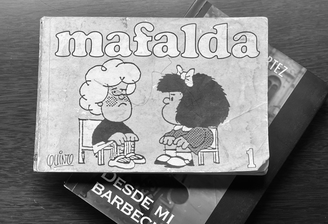 A finales de los 70, y principios de los 80, sin poder precisar quién las adquiría, las tiras cómicas de Mafalda, reunidas en libros apaisados de “Ediciones La Flor”, se las podía encontrar en diferentes partes de mi casa materna. Las historias, las frases y los personajes creados por Joaquín Salvador Lavado Tejón, alias Quino, eran motivo de parafraseo, charlas, burlas y juegos en mi entorno familiar. De algún modo, crecimos rodeados y alimentados por las ácidas e irónicas reflexiones de esta niña que odiaba la sopa, amaba a los Beatles y al Pájaro Loco.