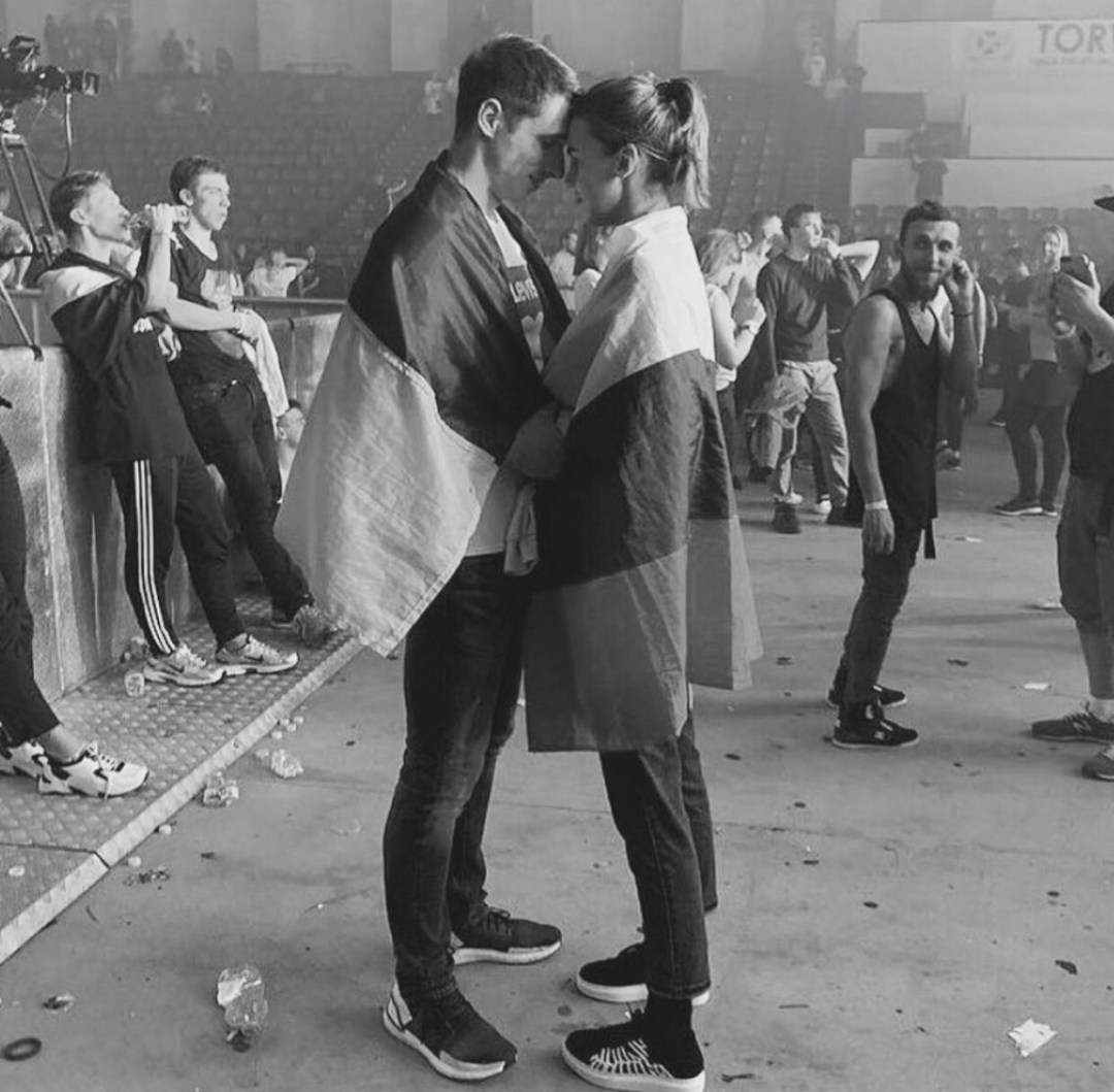 La imagen de la rusa Juliana Kuznetsova, junto a su novio —ucraniano—, tocando sus frentes, abrazados, y ambos con las banderas de sus países colgadas como capas, no podía pasar desapercibida y revivir, y hacerse aún más viral, en las presentes circunstancias.