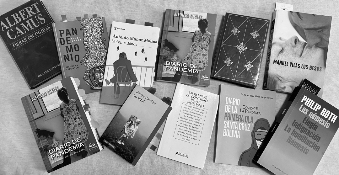 El covid-19 también produjo centenares de publicaciones. Una de la primeras que llegó a nuestras librerías fue En tiempos de contagio (2020) de Paolo Giordano que son una serie de reflexiones y emociones personales que esta inaudita situación le provocó al autor. Giordano escribió estos breves ensayos que aúnan dos mundos supuestamente irreconciliables: la contundente racionalidad del científico con la vulnerabilidad y las incertezas propias de un escritor sensible y comprometido. Lo viral (2020) de Jorge Carrión es, al mismo tiempo, una reconstrucción histórica de los primeros meses del coronavirus, un ensayo fragmentario sobre la viralidad digital, la memoria de una biblioteca en cuarentena, un experimento de crítica cultural y un diario falso, pero sincero.